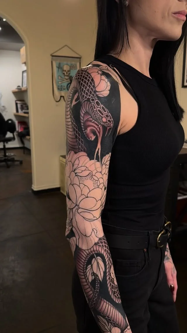 Now tattooing and co-owner of Seventh Serpent Tattoo in South Park, San Diego, Mauricio is known for his expert execution and creative approach. Whether you're seeking powerful and bold pieces or detailed linework, he delivers custom tattoos with intention and depth.
